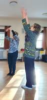 Am Samstag leiteten Karin Diener und Gudrun Preuß zum gemeinsamen Tanzen an. Die Grupppe bewegte sich mit viel Freude an diesem Nachmittag zu modernen Lobpreisliedern sowie der israelischen Nationalhymne. Zeit für freie Bewegung und kreative Veränderung oder Ergänzung der Dreifaltigkeitsinstallation "Der göttliche Tanz" stand ebenso zur Verfügung.