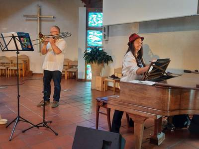Sie kennen sich durch ihre langjährige Tätigkeit an der Musikschule Badische Bergstraße in Weinheim und spielen unter anderem All of me von John Legend und Change the World von Eric Clapton.