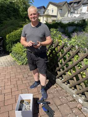 Nach einigen Telefonaten haben wir einen Kontakt zum Falkner Karsten Fath bekommen, aber in der Zwischenzeit war der kleine Falke verschwunden. Am Montag ist er dann wieder gesichtet worden, als er es sich auf der Bank vor dem Pfarrgarten gemütlich gemacht hatte. Aber kaum hatten wir den Falkner am Telefon, war der Vogel schon wieder verschwunden.